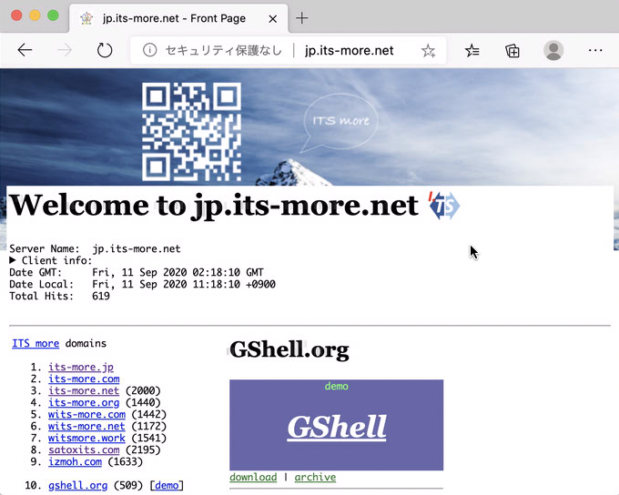 基盤:satoxits.comから行きます。うーん、どうしてこのサイトをポルトガル語だと思いたがるんですかね?前々から。ASCIIしか無いのに。あれ?in.its-more.net、つながりました。… そうこうするうちにSSHも。
