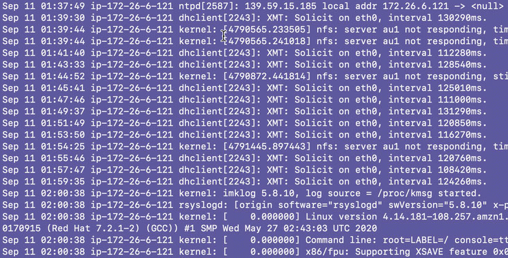 基盤:ライトセールに限らず、AWSは再起動に非常に時間がかかる事があります。その時の /var/log/messages ...