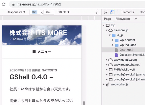 開発:あと、スマホ表示用のエミュレーション機能とか。