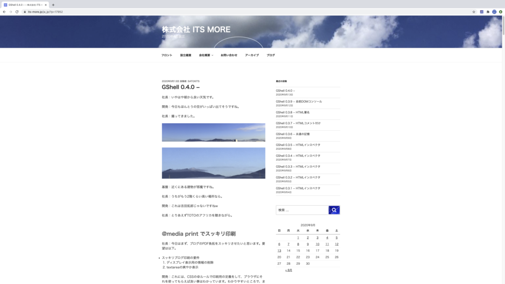 社長:あれがダメダメなんで、書きかけで「公開」していちいち「更新」してはゲストモードでブラウズしているわけです。まあ、これは開発の実況中継も兼ねてますから、それはそれで良いのですが。