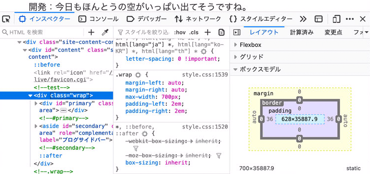 開発:で、print media で表示させてエレメントを見ると、こうなってます。
