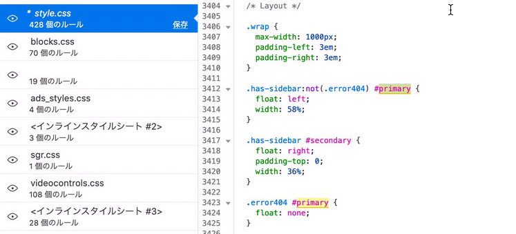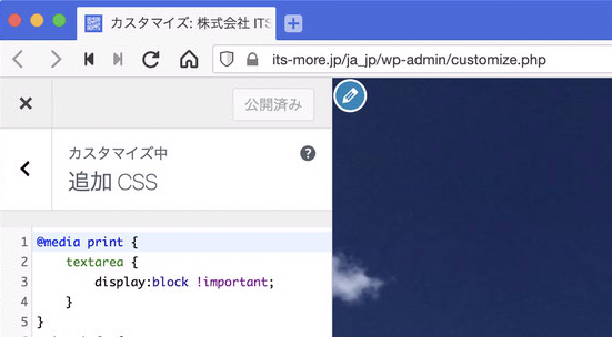 開発:で、これを上書きしたいので、WordPressの追加CSSを定義します。