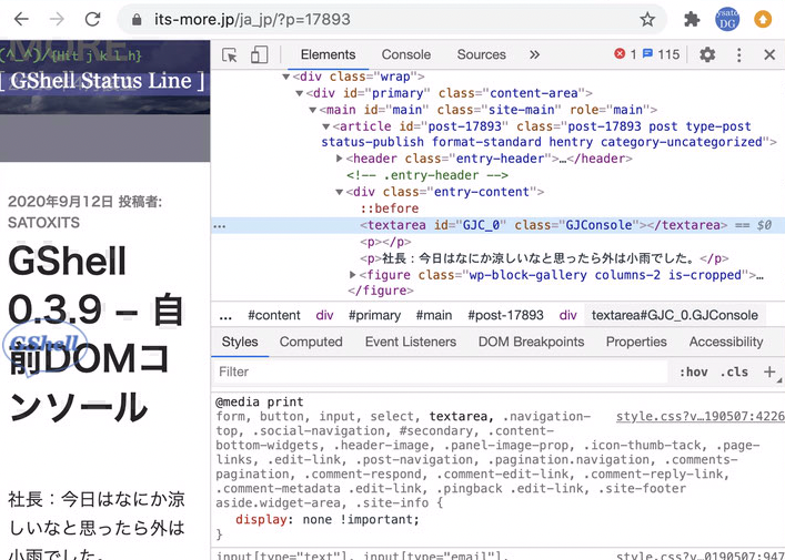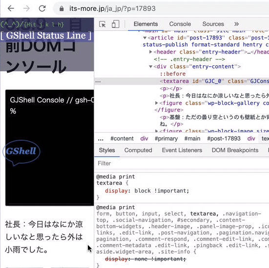 開発:すると、textarea である GJConsole が印刷モードでも表示されるようになります。