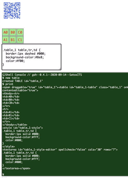開発:GJShell の例題として面白いですね。DOMの上に table を作ってやれば簡単に出来そうに思います。JavaScript を貼り付けられるかがちょっとわからないですが、出来ないならインタプリタでも良いかなと。