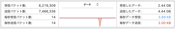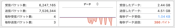 リモートのファイルの cksum を確認しましたが、もちろん同一です。そしてこの例では、2回目以降は何もデータ内容に変更が無いので、何も送られていないようです。macOSの(とてもステキな)アクティビティモニターには、一発目の転送しか出てきません。