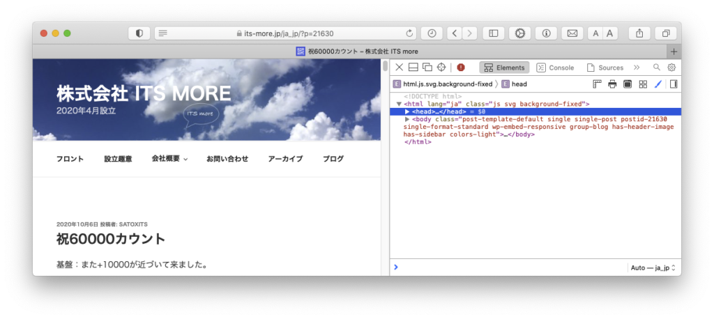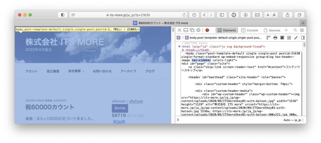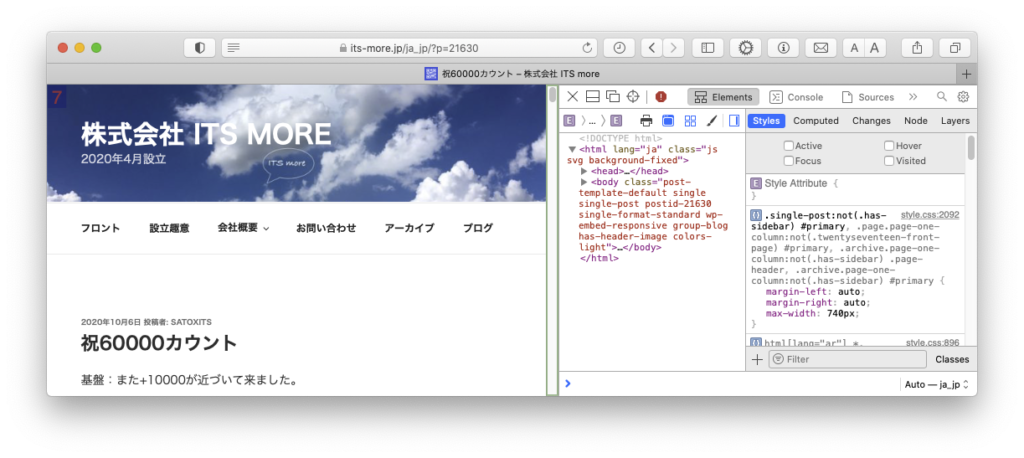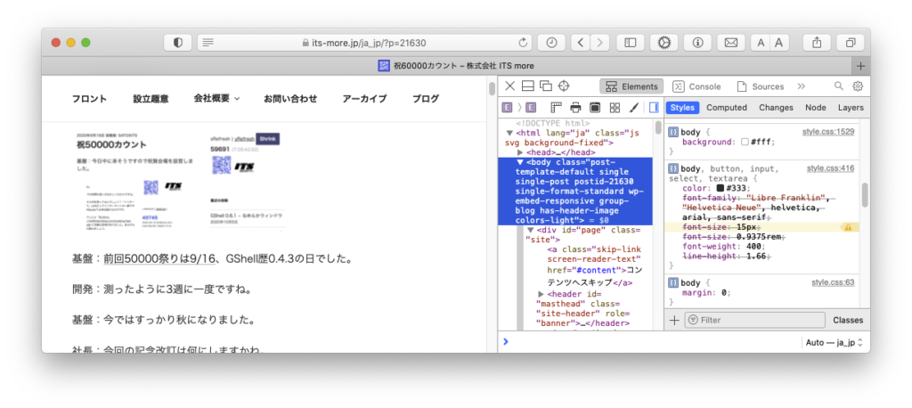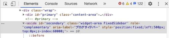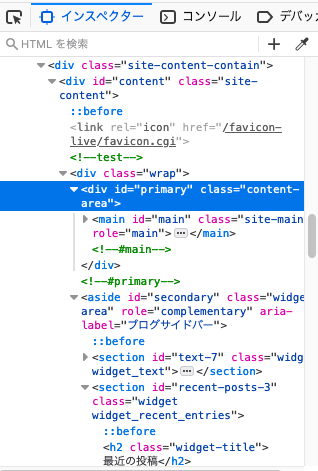 開発:ただちょっと、生きてるDOMからクラスを外すというのもなかなかドラスティックな感じはしますが… やってみましょうか。インスペクターでエレメントを表示。