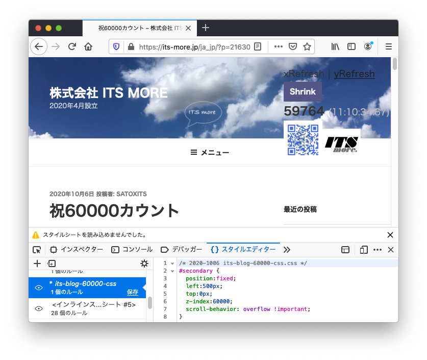 開発:ふうぅ… なんとか単独スクロールするサイドバーができました。