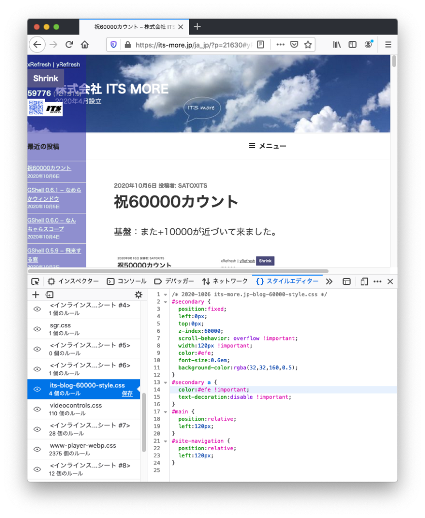 開発:またぞろfunctions.phpのPHPでセミコロンを打ち忘れてサイト全体が止まるのも嫌ですし、この際に全部JavaScriptにしたいと思います。GShellにもサイドバーを入れようかと思っていますので、GShellで作って動作確認して、出来上がりをWordPressに張るだけ。追加CSSの分も面倒なので、まとめてGShellでやりたいと思います。
