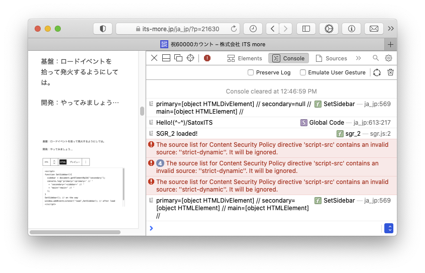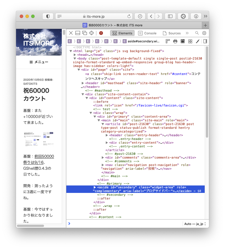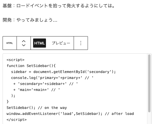 開発:いや、JavaScriptで動的にやってやれば良いかなと。ただ、どうもブログ記事の中のカスタムHTMLからsecondaryが見えないんです。