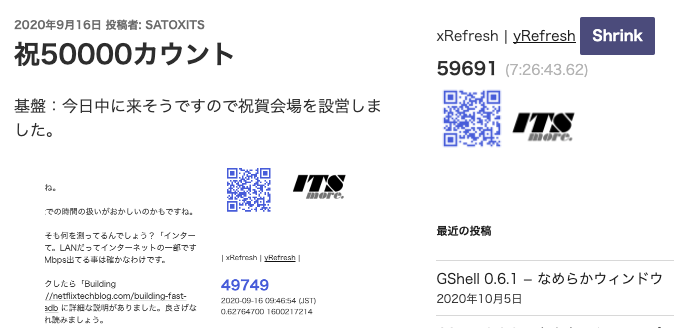 基盤:前回50000祭りは9/16、GShell歴0.4.3の日でした。