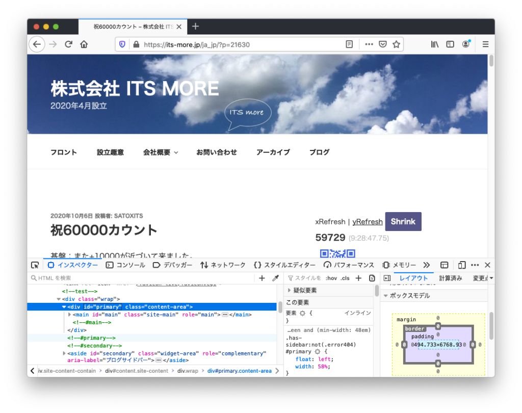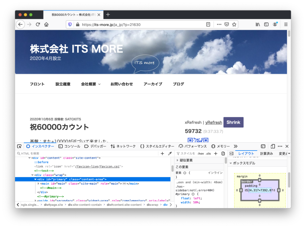 開発:ではこれ以上大きくならないとこまで拡幅… 58%で524px が最大です。