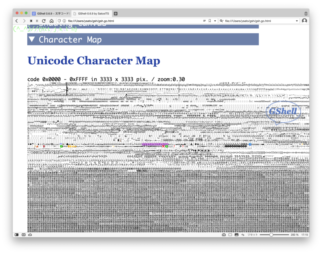 GShell 0.6.9 − 文字コード曼陀羅