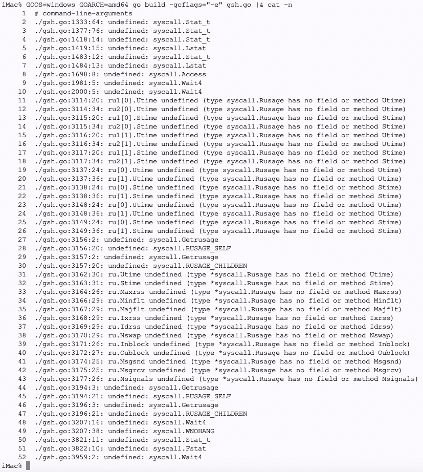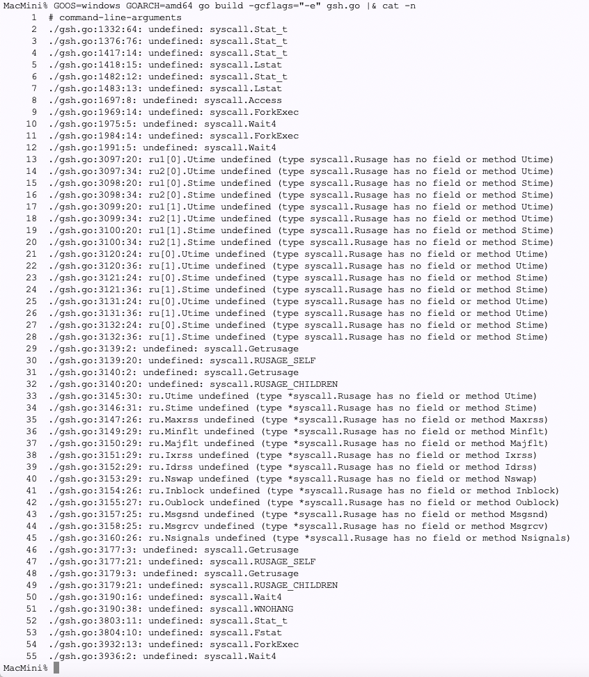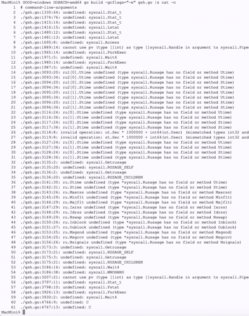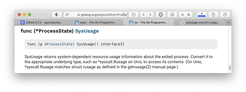 開発:まずは syscall.Rusage のパージですね。一箇所に寄せて、切りやすいようにします。。。変更後、Unixでは動作することを確認。