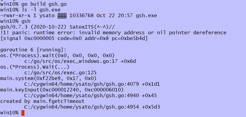 開発:Lstatはネイティブなローカルファイルとしてはどうにもならないですね。ショートカットでエミュレートするか。Fstatは、syscall.Pipeも消しましたらから、そもそも開いてるファイルは常に os.File なので、問題ないと思います。