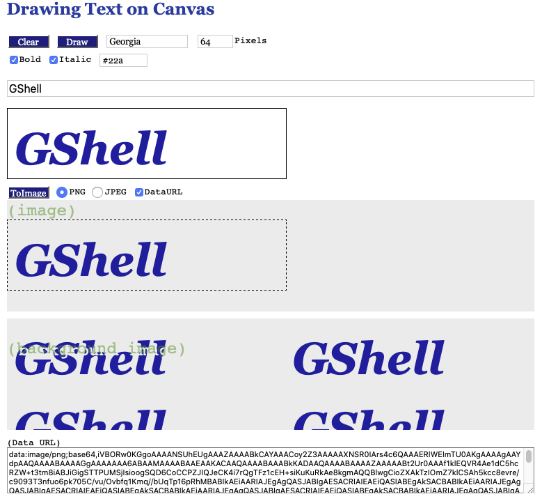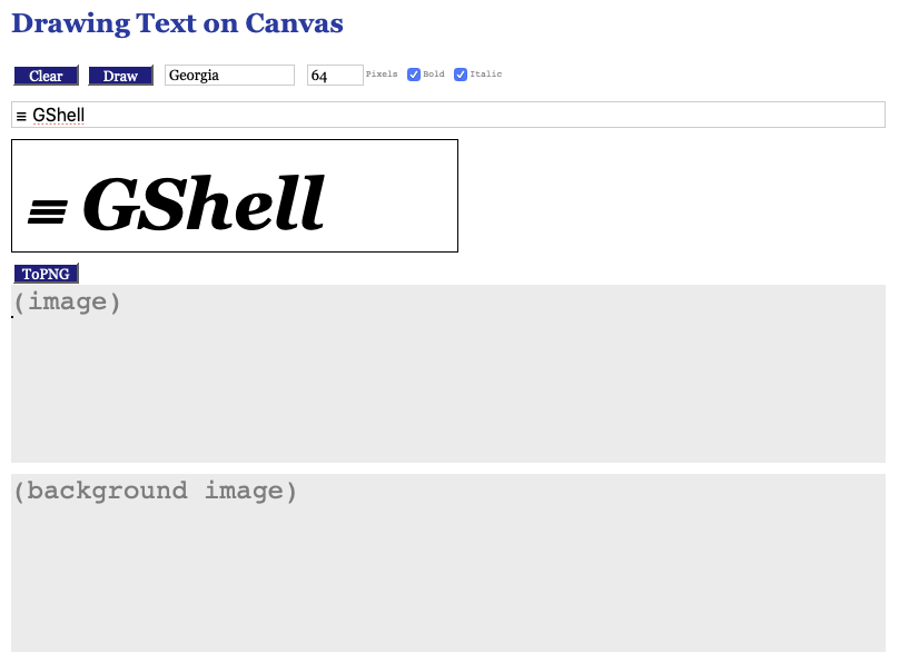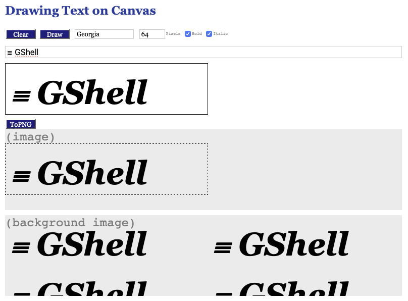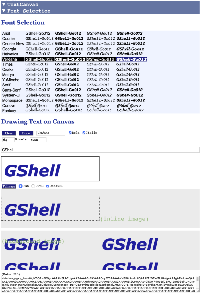 開発:思うにやはり、HTMLテキストをそのままCanvasに書きたいですね。≡ GShell とかは、≡ と Gshell の間に微妙な隙間を開けたい。HTMLなら簡単に指定できるのですが。