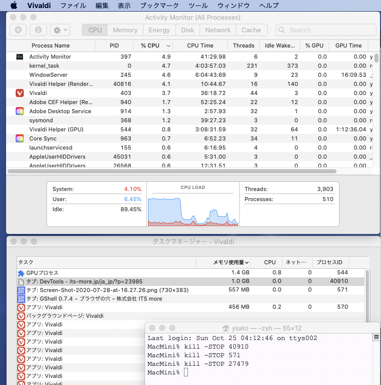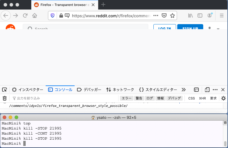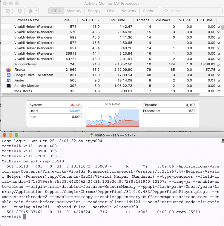 基盤:kill -STOP。これ、ブラウザのタスクマネージャーから出来ないんですかね?