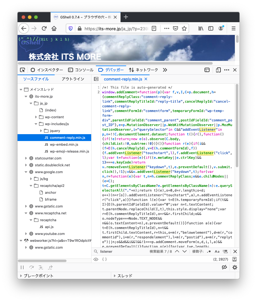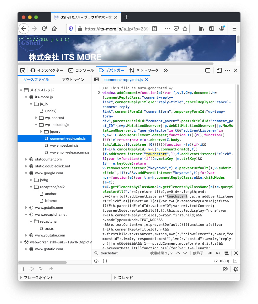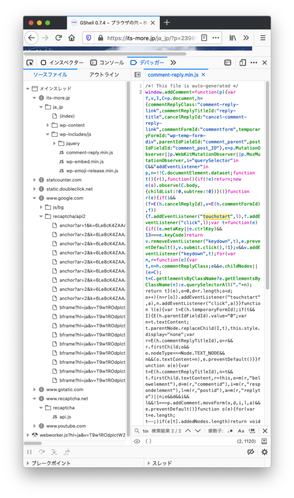 開発:で、その comment.reply.min.js とやらは何者ですかね。