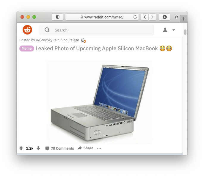 投稿日: 2020年11月11日2020年11月11日 投稿者: SatoxITSApple Silicon MacBook 基盤:開いたままにしてあったredditに、こんな投稿が表示されてました。 全員:(爆笑) * * * 開発:腹イテー… 基盤:こういう発想はどこから出てくるんでしょうね。 -- 2020-1111 SatoxITS