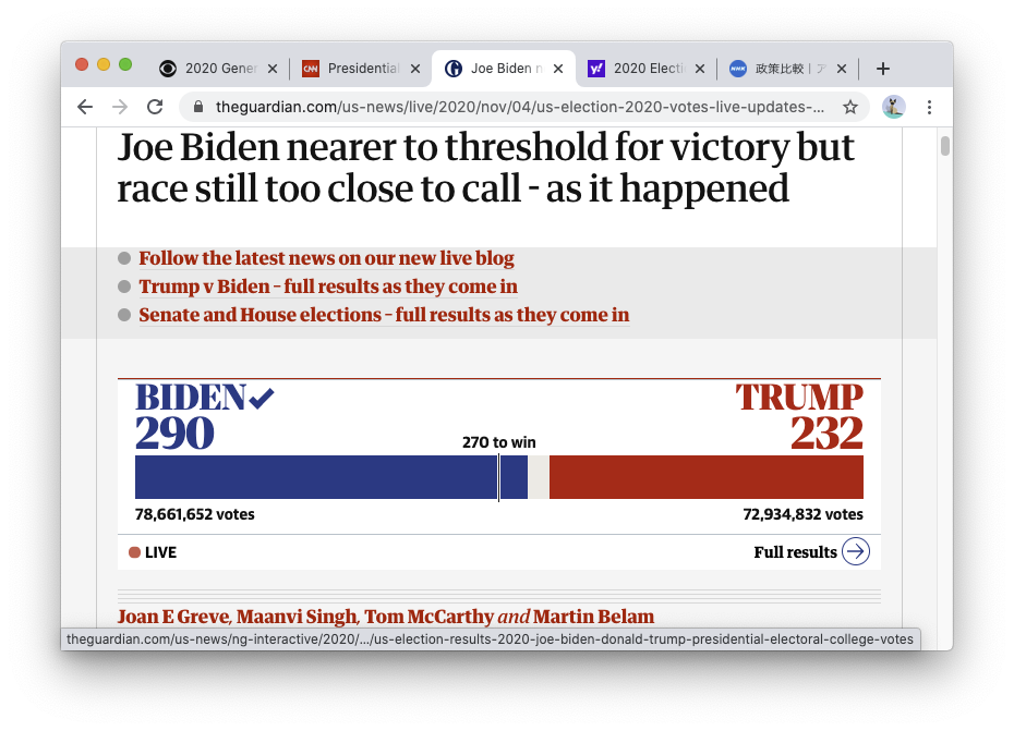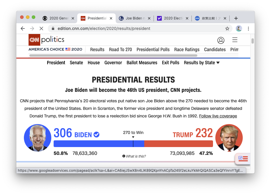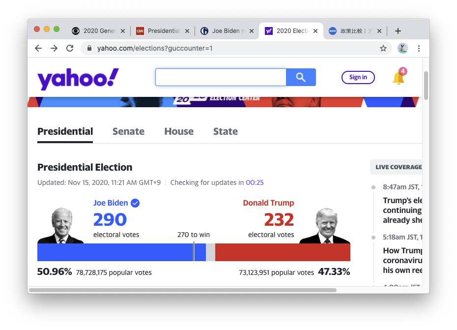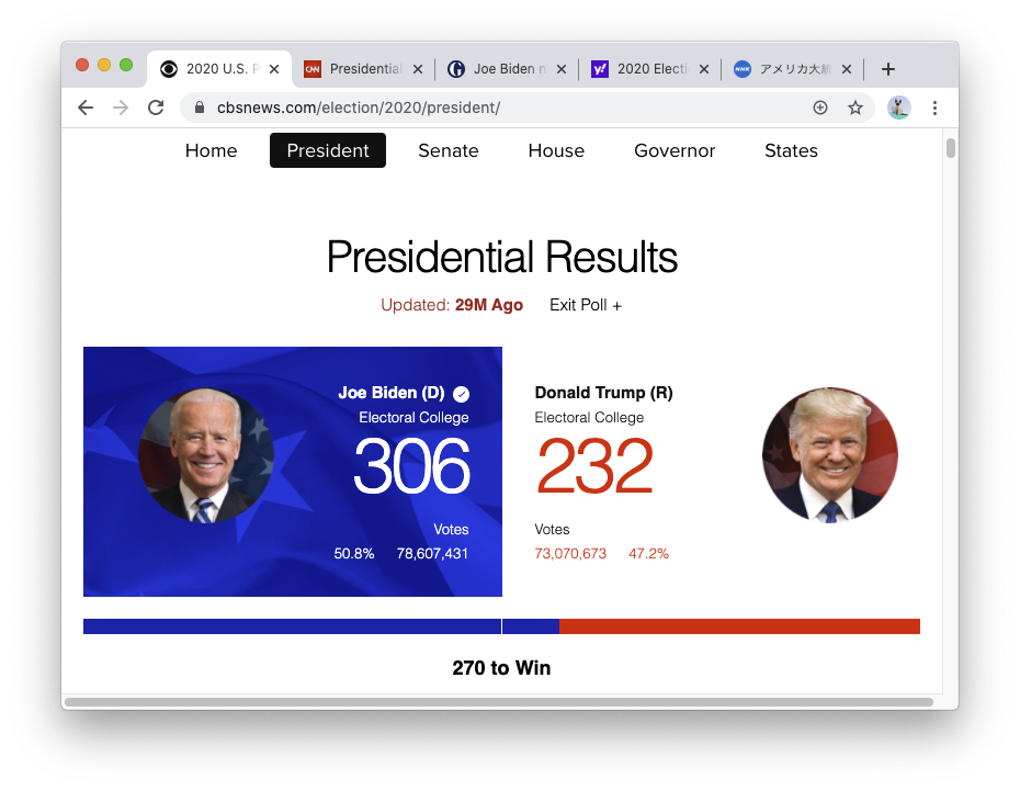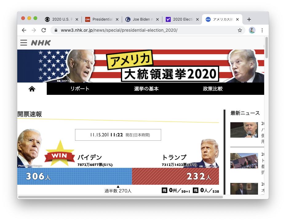 基盤:「トランプ大統領の抵抗も限界に、法廷闘争、立て続けに棄却」(2020年11月15日)とか。