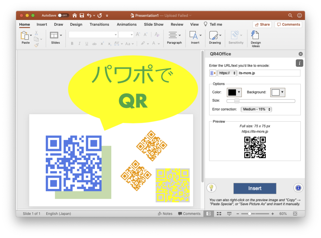 開発:パワポでQRコードを生成して編集できると便利という話ですね。アドインとか作れば良いのかな。