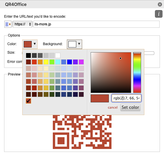 基盤:とりあえずQR4Officeというフリーのアドインがあったので、インストールして使ってみましたが、こんな感じです。