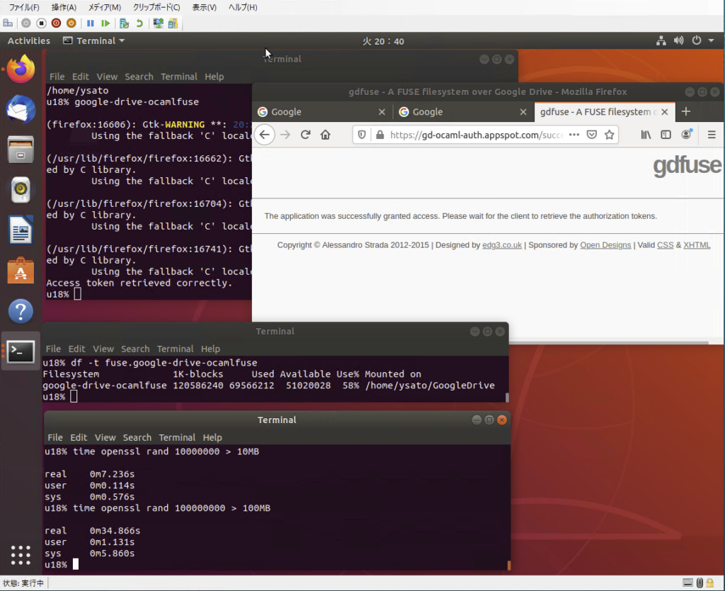 基盤:とりあえず先人のメモのとおりやって、GoogleDrive をUbuntuにマウントできました。