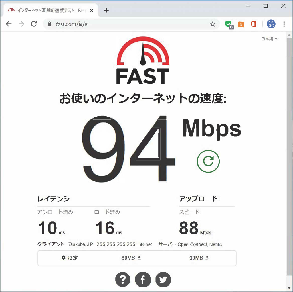 おおー、立派立派。それにしてもこのfast.comって偉い。このユーザインタフェースは素晴らしい。しかし、いったいどういう経路になっているのでしょう?