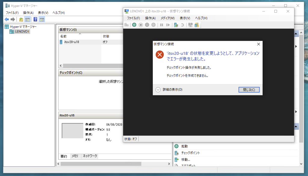 基盤:・・・悲しいお知らせです。さっき仮想マシンを一旦落としてチェックポイントを潰そうとした時に、なにかガチャガチャやったせいか、壊れました。
