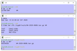 基盤:その間にVMのバックアップ、無事終わりました。所要52分13秒。SDD to SDD での圧縮保存と変わりません。お値打ちHDD作戦、完全勝利ですね。