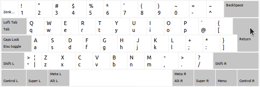 基盤:この、keyboard layout というアプリを開いて、キーを押すとその部分がハイライトするというすぐれものです。ただし。非常にイミフなのがこの「|」の位置です。