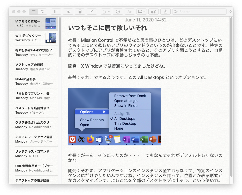 開発:社長は書いたブログを最終的にPDFにしてるから、Notesで書いてPDFにしてそれをアップロードするって使い方でも良いかも。WordPressで思い通りにならないイライラ感はなくなりますね。