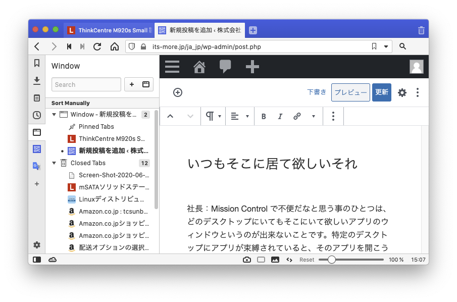 開発:社長の今の使い方だと、WordPress 用のブラウザが常駐していると良いということじゃないですかね(笑)