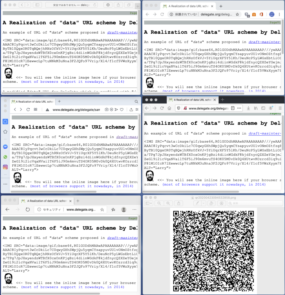 以下は2020年4月現在の、5大メジャーブラウザでの data scheme の表示。いずれもちゃんと表示できている。