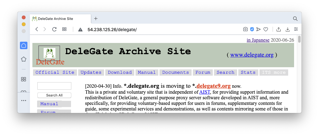 開発:それでは DeleGate の etc に行って sh httpd。あ、80をbindできないと。subin/dgbind のオーナとモードを変えて再トライ。あれ?