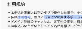 社長:ああ、あのドメインは逝ってしまわれたのか。4月の頭にユニークIDについて考えて居た時に取ったんですが… まあ、語呂が全然よくなかったとは思います。しかしあの当時は、高価な .org とか平気で取ってましたね。おーっと、.space 空いてるじゃないですか、しかも50円。ポチポチっと。んー?最後のポチッとの前に利用規約というのがひっそりありますね。