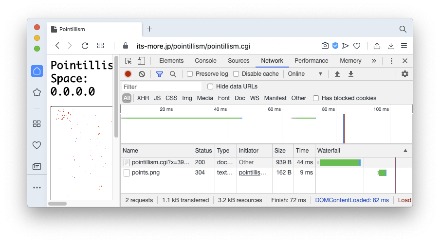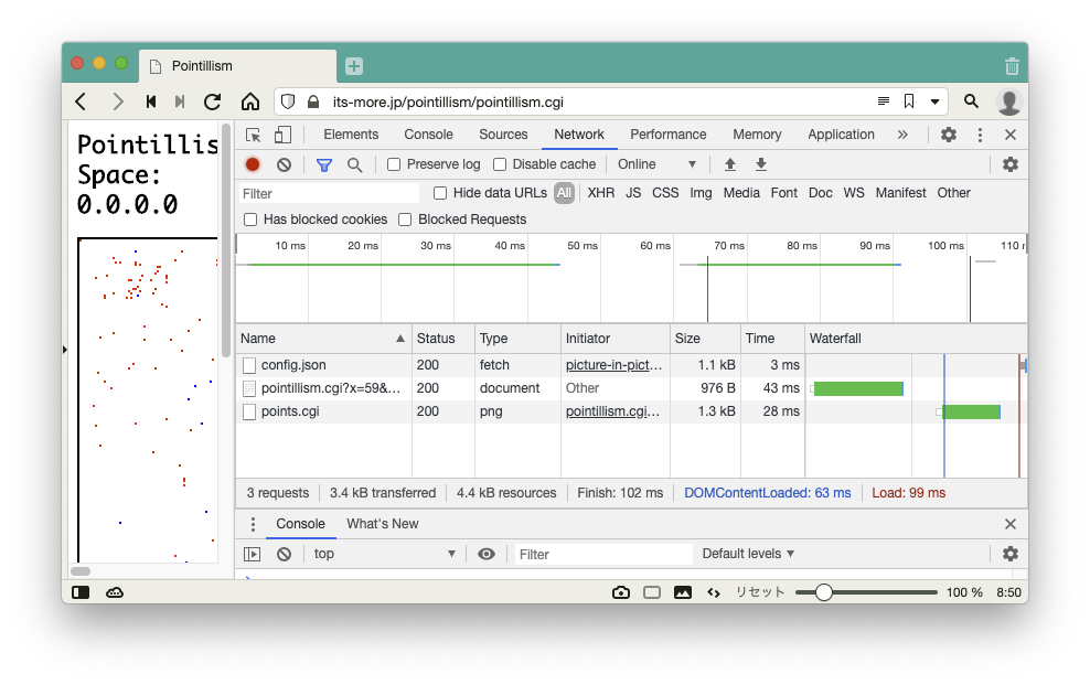 開発:で、これを ~/public_html/its-more.jp/pointillism の下に置いて、おもむろにアクセス。