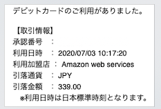 基盤:「元の請求は $3.07 」であったことの明示と、それがなぜ 「引き落とし339.00 円」になったのかの説明が必要ですね。