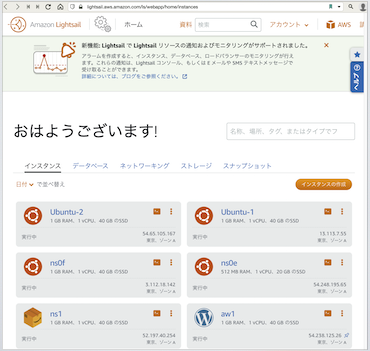 基盤:AWSのコンソールではこのように。