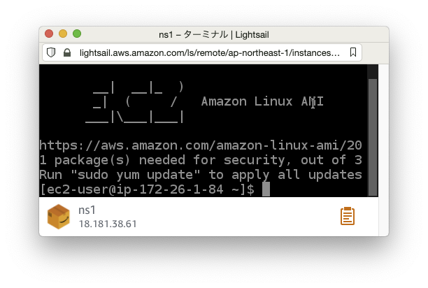 基盤:ということで、この ns1 という名前の Amazon Linux のインスタンスを今後我社のネームサーバとしたいと思います。