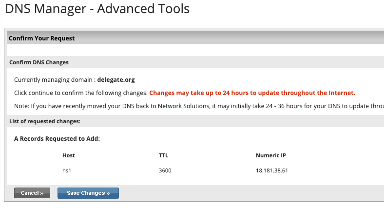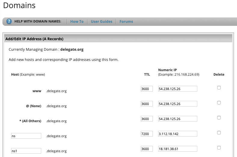 基盤:では nso にて ns1.delegate.org を登録。18.181.38.61。